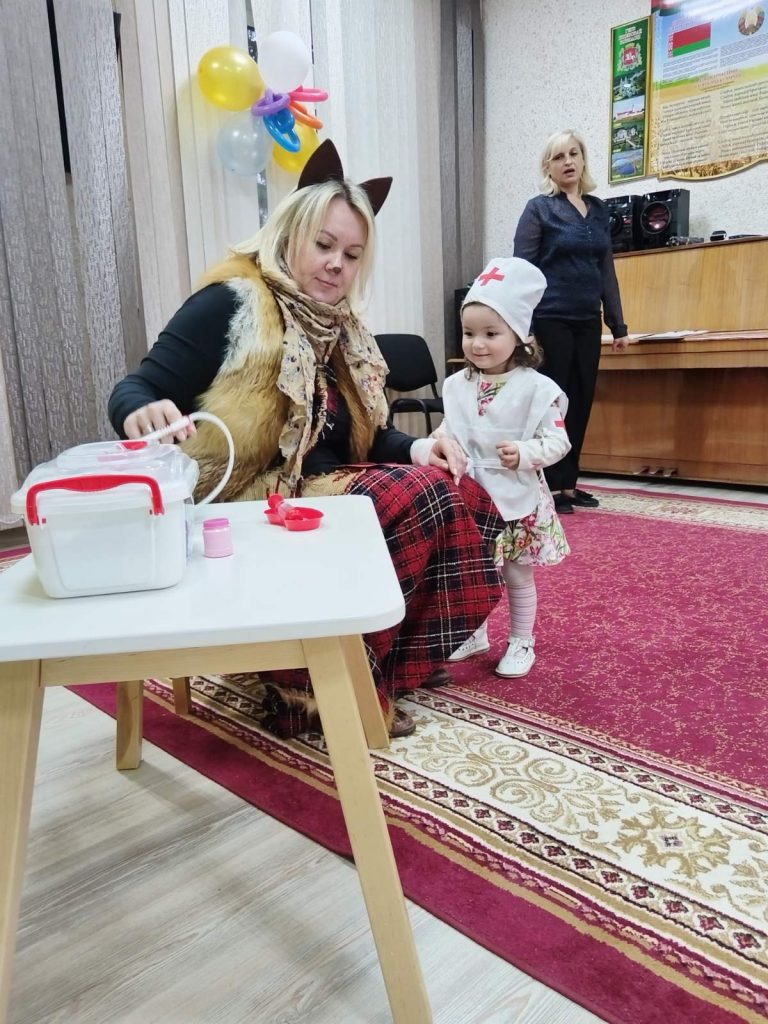 Взрослые приготовили настоящий праздник для ребят. Дети посмотрели кукольное представление про дружбу, поводили хоровод, поиграли, потанцевали. А ещё маленькая Доктор — Мадина полечила лапку Лисичке!