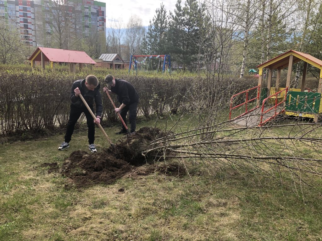 Работы были выполнены самые разнообразные: омолаживающая обрезка кустарников, пересадка деревьев, покраска детского оборудования, побелка деревьев и бордюров, вывоз мусора. Большую помощь в вывозе мусора оказал Департамент охраны, ими был предоставлен трактор с погрузчиком, за что им отдельное большое спасибо!